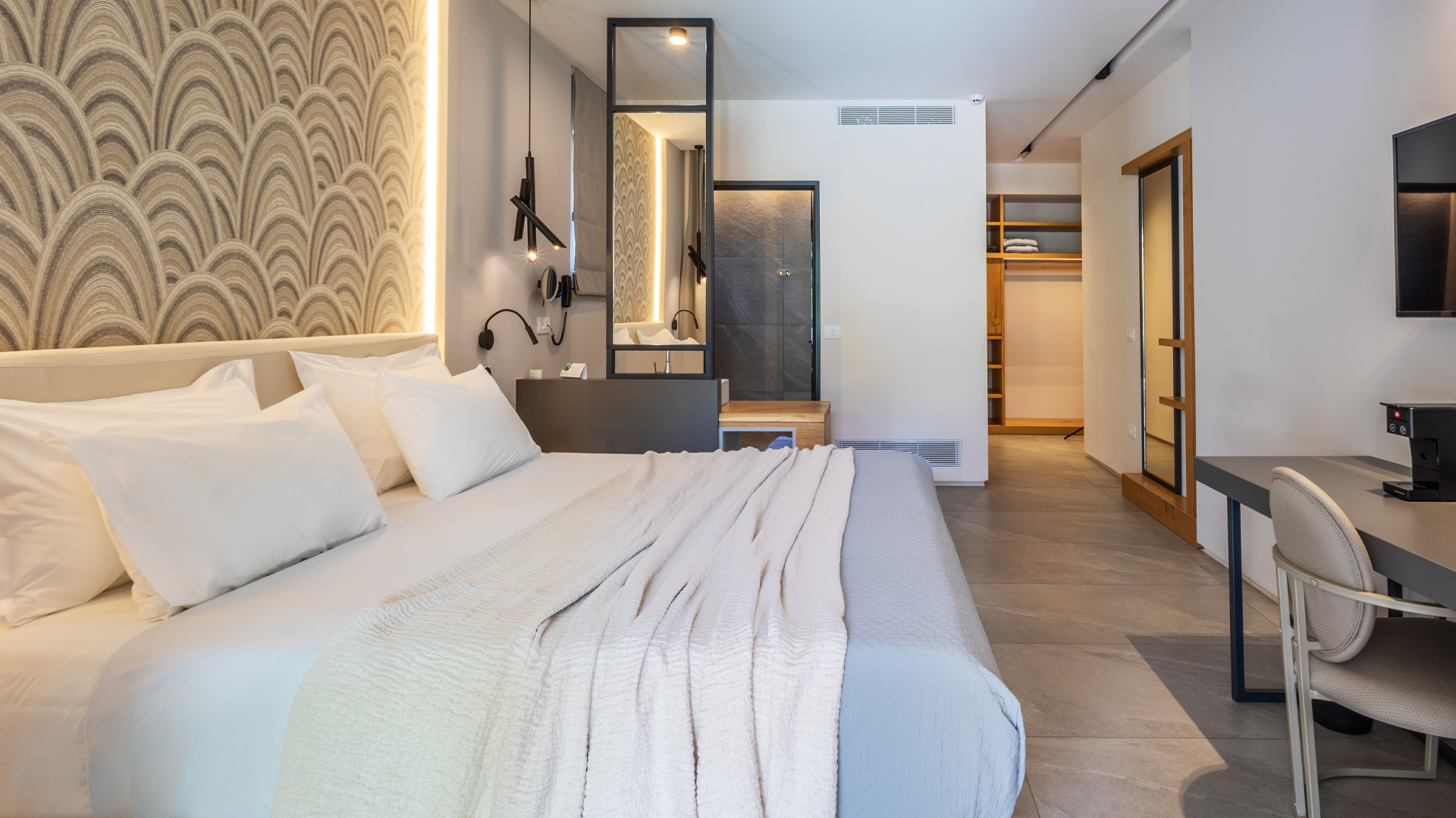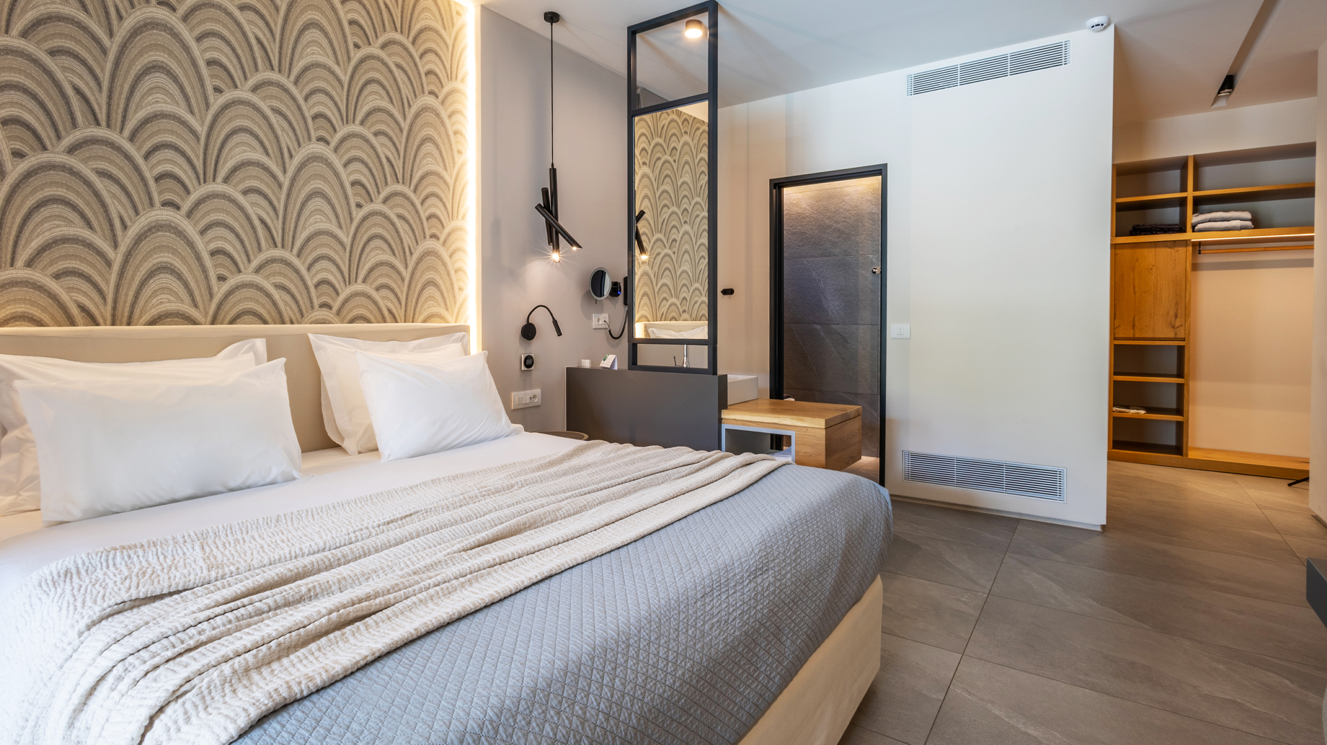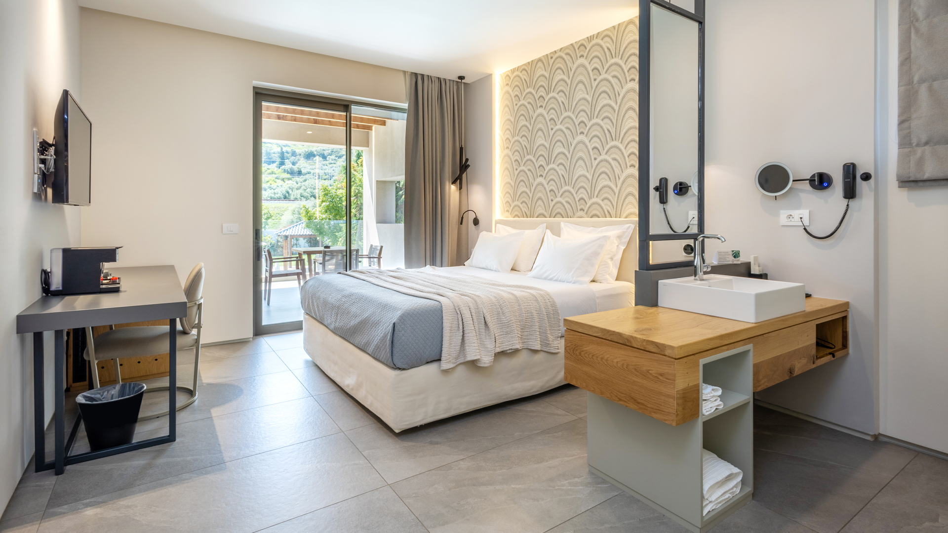 Premium Suites provide cozy indoor arrangement, inspired by the minimalistic beauty of the scenery.